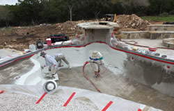 The final stage of your project will be a coating of plaster over the gunite shell. Choose classic white marble or a wide range of colors from our samples and brochures in our showroom. This process requires a quick, hard working, experienced team to smooth the surface to assure a beautiful finish. Upon completion of plaster the pool is immediately filled with water. The next seven days the pool will require the brushing of the plaster surface twice daily to ensure a smooth clean surface.